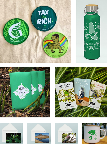 Show your solidarity with Te Tiriti with our “Whaka Kotahi” tees from artist Inia Taylor, now available in a breezy new sage green. Or show your Green support with our fresh new logo tees.