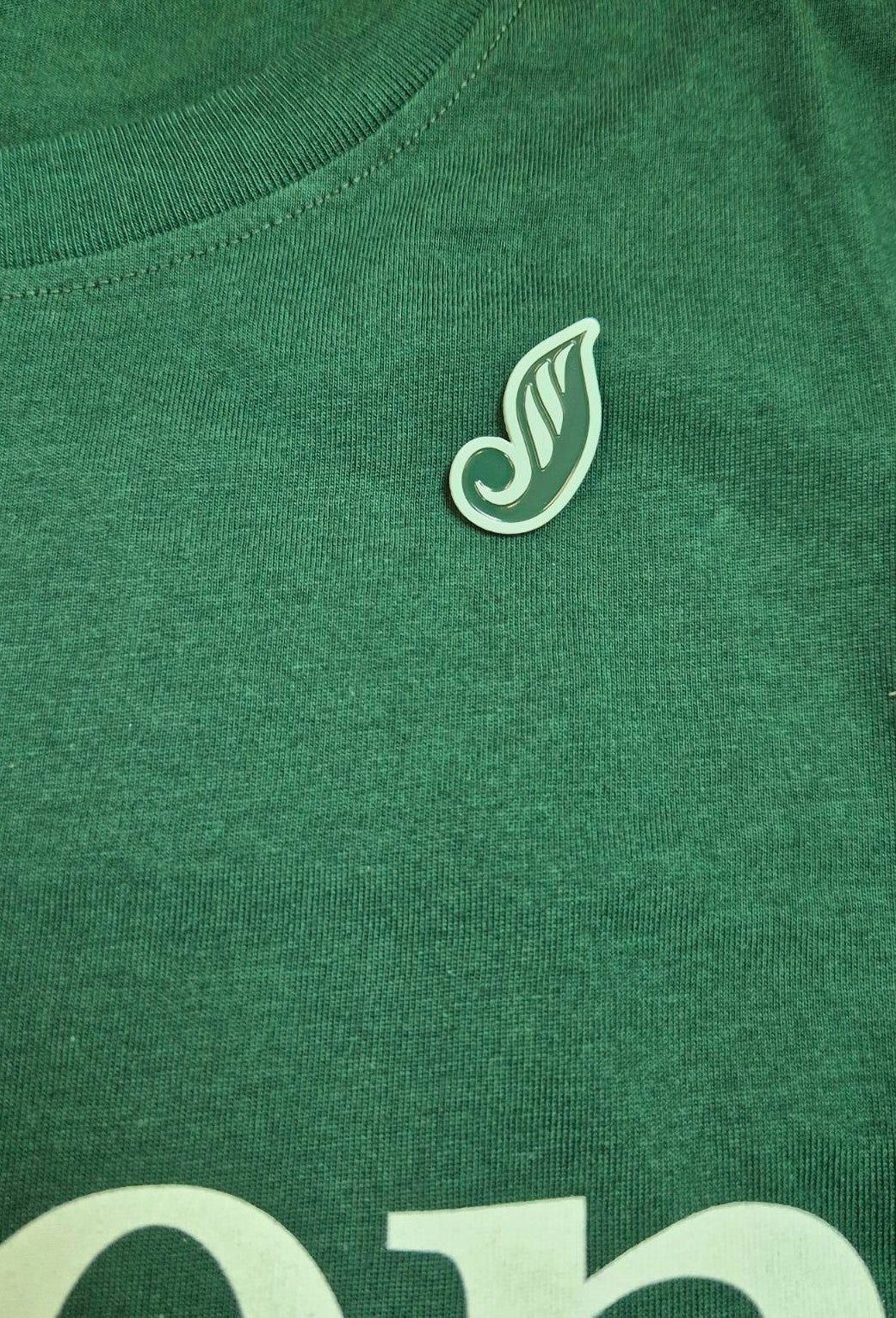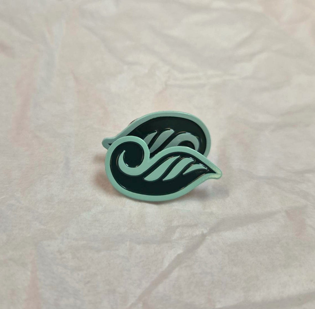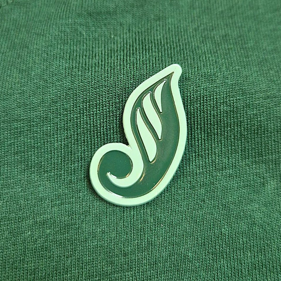 Limited edition Green koru pins. These are a reimagined version of the Green Party 'G' logo, a subtle and versatile way to show your values.